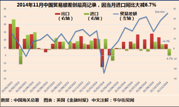 华尔街见识此前文章总结国内外分析师观念称,11月我国交易顺差虽创下前史新高,但并不是好事。受进口疲弱影响,我国11月交易顺差现“阑珊性增加”。这背面暴露出我国整体内需仍然缺乏,跟着油价跌落,将来交易顺差料将坚持高位,年内降准也许性降低。